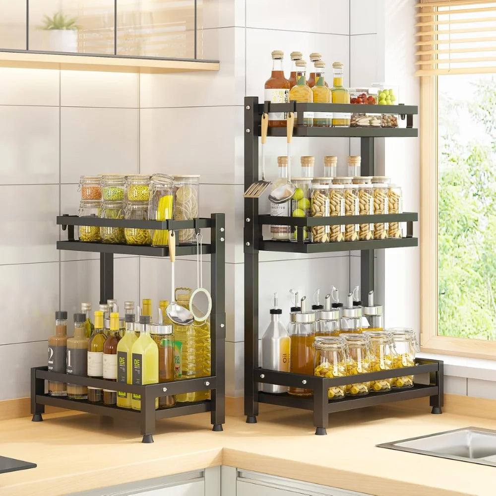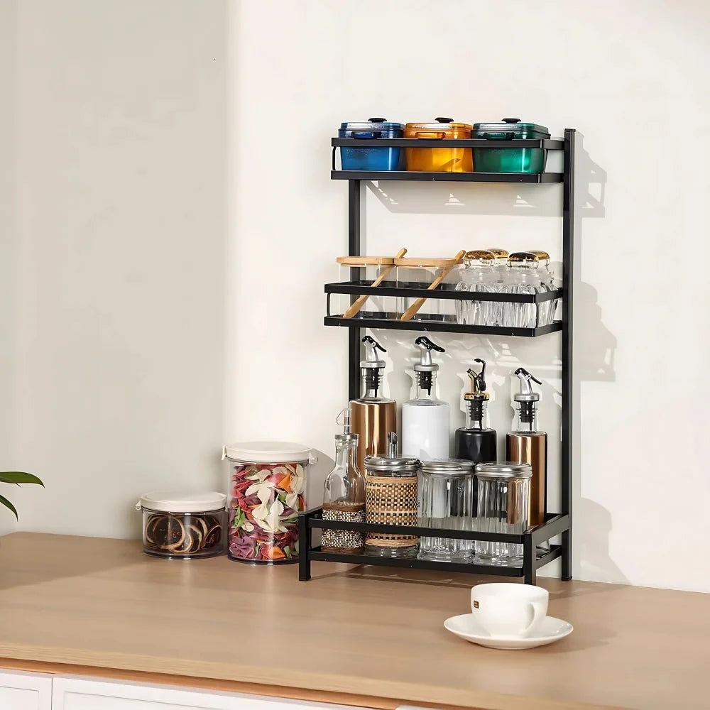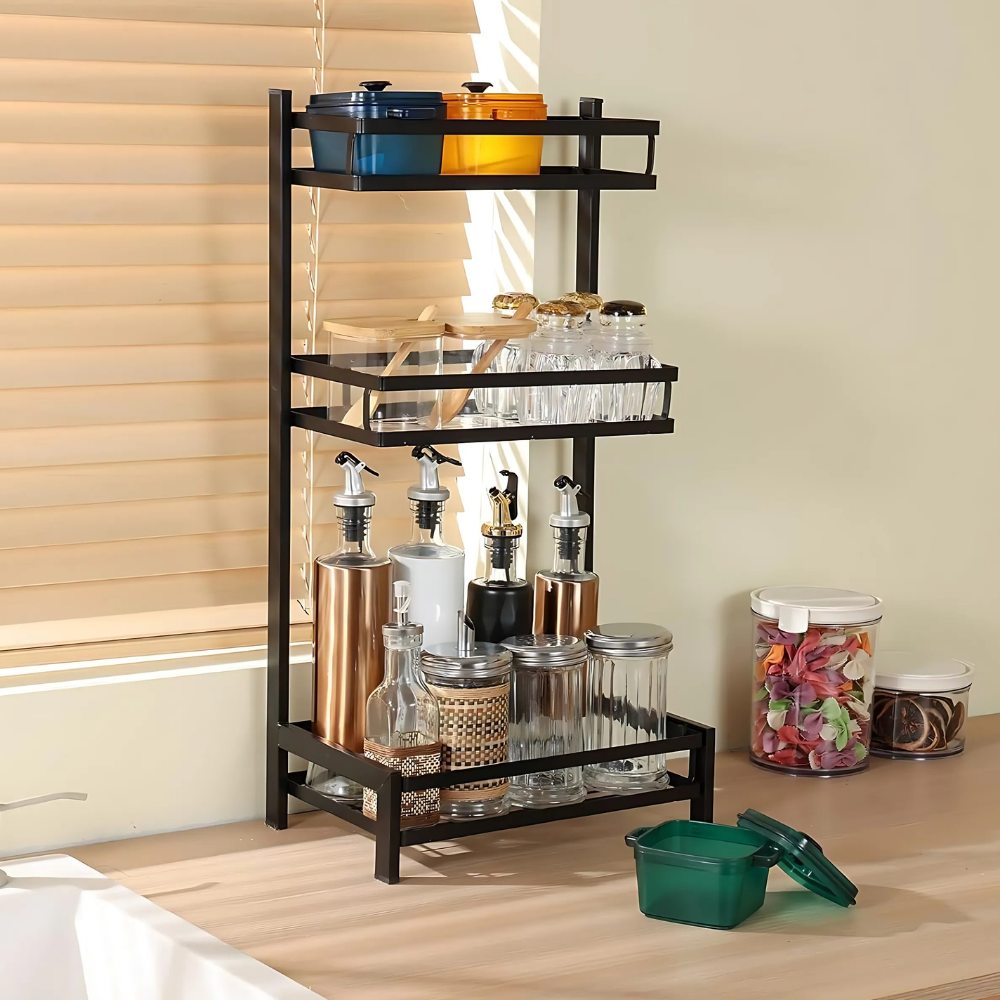 Organizujte začine, tegle i kuhinjski pribor uz praktičan metalni organizer sa 2 ili 3 police. Moderan i funkcionalan dizajn unosi eleganciju na radnu površinu i štedi dragoceni prostor u kuhinji.