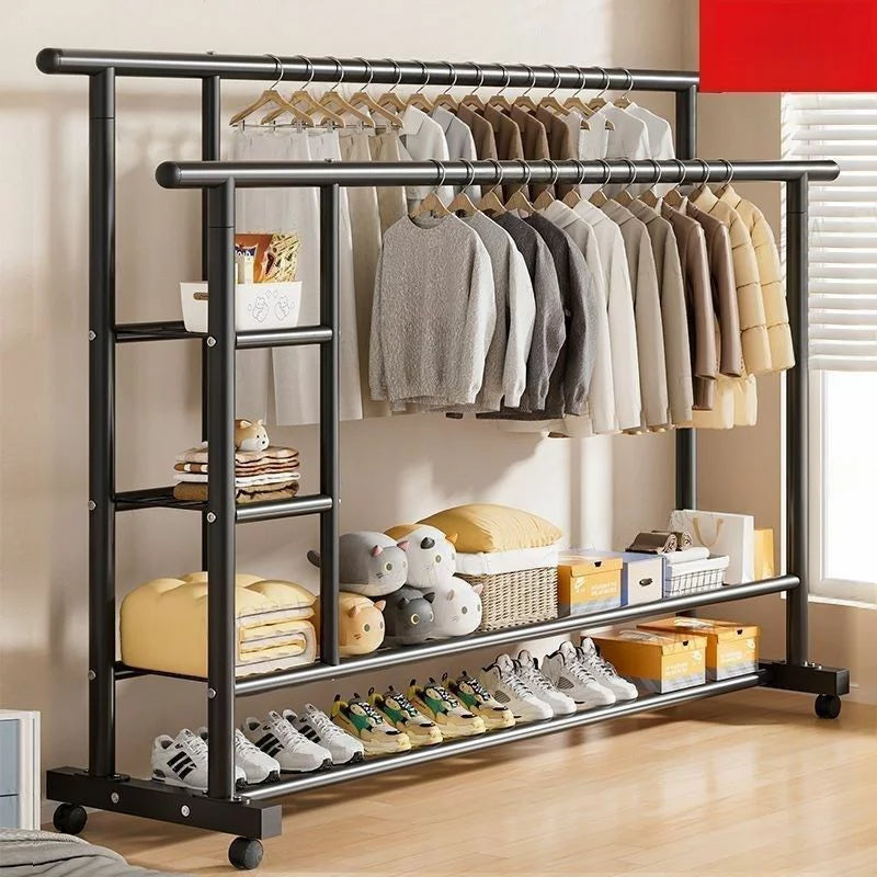 Višenamenski Metalni Stalak za Odeću – Sa Policama i Točkićima