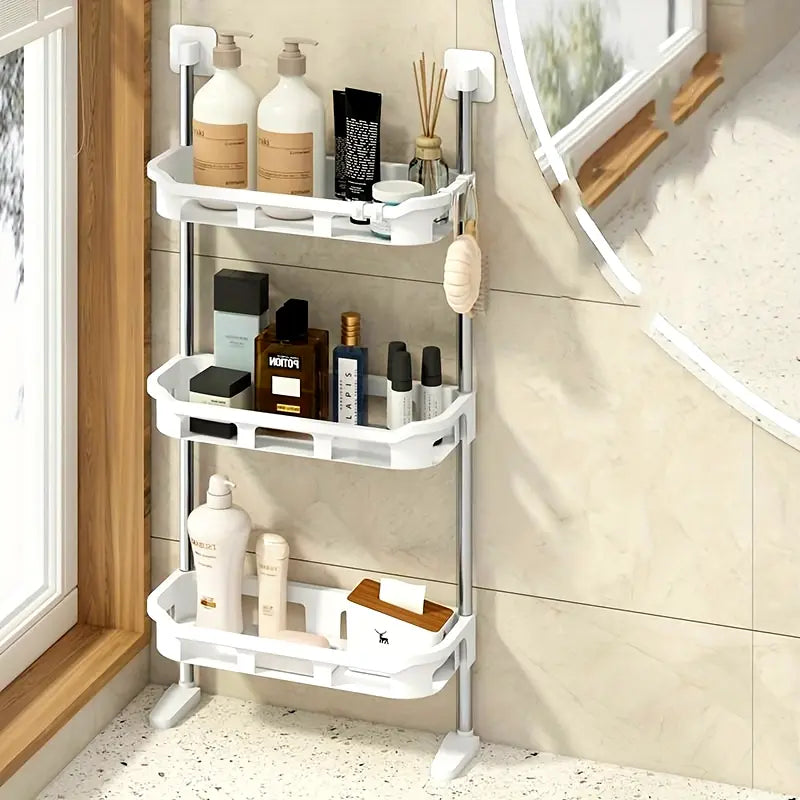Uredite kupatilo bez zauzimanja podnog prostora. Stabilan metalni ram i izdržljive plastične police drže kozmetiku, peškire i dodatke pregledno i na dohvat ruke.